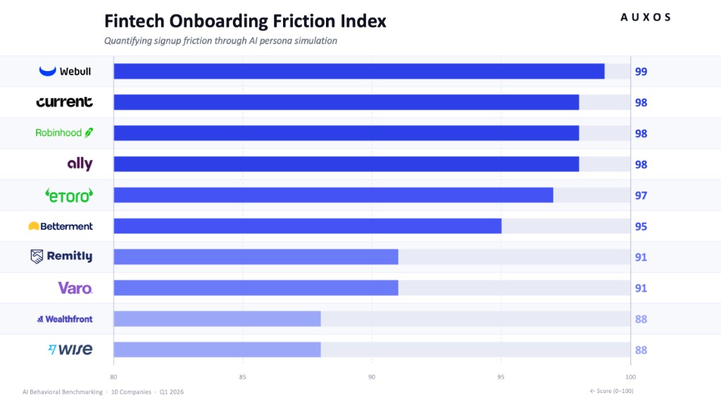 ResearchWe evaluated 100 fintech signups. Here is what we found.The Auxos Fintech Onboarding Friction Index, Q1 2026Read article